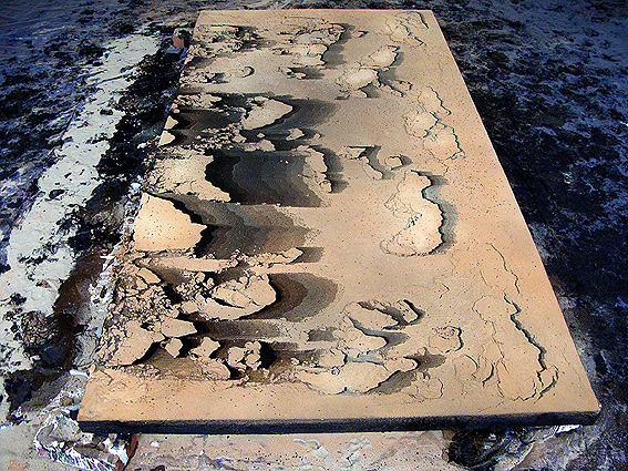 I see the critical context for my work in Jack Derrida’s ideas of Deconstruction and Fragmentation - my interest in the transforming ideas of a structure’s surface, distortion, shifting, dislocation as well as unpredictability and controlled chaos; also important is the ‘Simulacra Concept’ by Jean Baudrillard – since I imitate natural processes, surfaces and materials in my work.