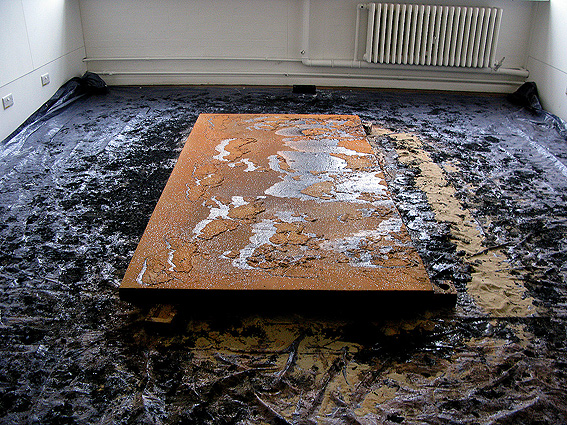“Pictorialism in my work is an unpredicted residue of the techniques and materials I use to make it. I manipulate and simulate physical processes, alongside with the options offered me by painting and sculpture, through my intuition and subjective decision making - to see an entropic image of a desolated landscape results at the end.”