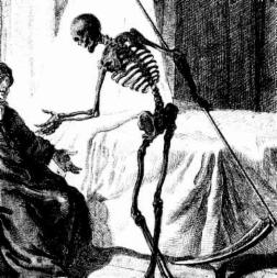 In English, Death is often given the name Grim Reaper and, from the 15th century onwards, came to be shown as a skeletal figure carrying a large scythe and clothed in a black cloak with a hood. It is also given the name of the Angel of Death (Malach HaMavet) or Devil of Death or the angel of dark and light stemming from the Bible and Talmudic lore. The Bible itself does not refer to "The Angel of Death"; there is, however, a reference to „Abaddon" (The Destroyer), an Angel who is known as the "The Angel of the Abyss". In Talmudic lore, he is characterized as archangel Samael. Wiki