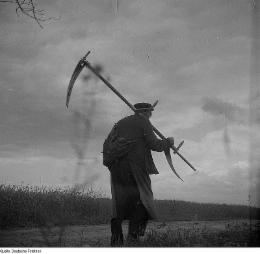 The Middle-Ages and a photographic depiction of a real man with a scythe