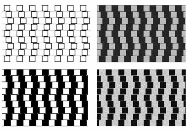 Derived from the so-called ‘Café Wall’ Illusion. This is one of the principles I normally apply in the construction of my sculptures made from bricks placing them one on top of another.