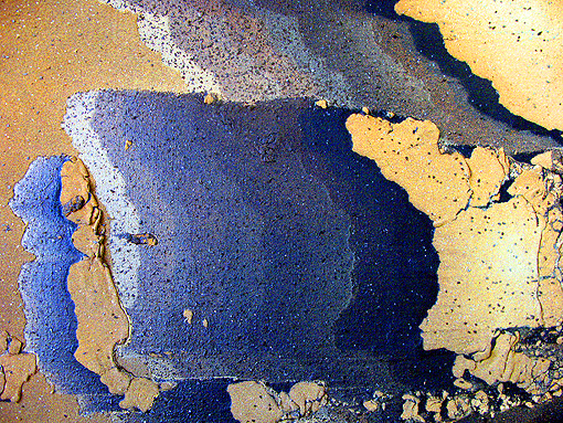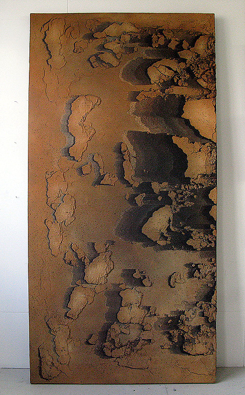 Entropy I, 240 x 120 x 6 cm, Acrylic, Sand, Pigments, Glass, Volcanic Ash, Spray on Canvas