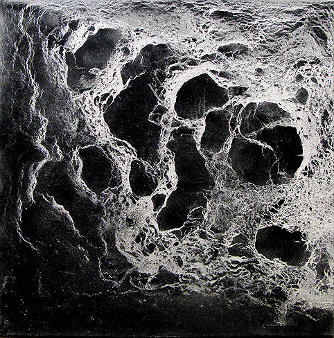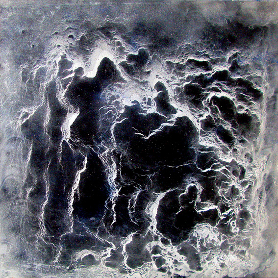 Stormy Water III, 200 x 200 x 6 cm, Acrylic, Sand, Lava Ash, Glass, Mirror Splinters, Spray on Canvas