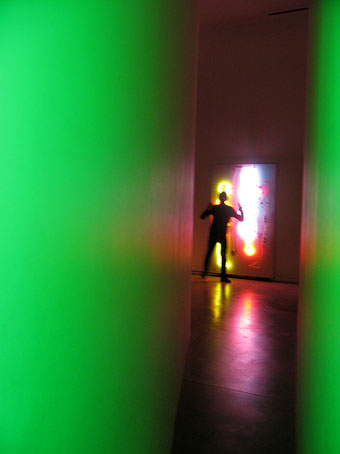 The exhibition’s title, ‘mindfuck’, is a slang term that may be used as both a noun and verb, situation and action. It can mean to brainwash or manipulate someone, or describe a distressing situation or incomprehensible event. A ‘mindfucker’ is anyone who makes a living by playing with the heads of his clientele, be it a guru, a psychoanalyst, a prostitute, or an artist. Like Nauman’s deceptively simple phrases, which turn on puns and reversals and often defy rational understanding, the vernacular ‘mindfuck’ distills in a single word the dichotomies and aporias that the exhibition proposes to explore, literally yoking together the rational and the intuitive, the verbal and the unutterable, the abstract and the physical." (Press Release)