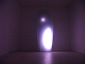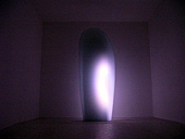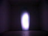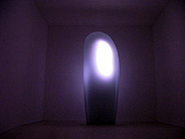 In her work, Mariko Mori addresses the cycle of life from birth to death and back again - so in the sculpture "Tom Na H-lu II (2006), a star has died to make a glass menhir;. Its pulsing inner lights are powered by cosmic rays and neutrino bursts or supernova, which are beamed as data from an observatory in Tokyo and translated into ethereal green, pink, yellow or blue afterglows.